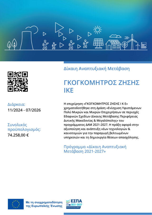Η επιχείρηση «ΓΚΟΓΚΟΜΗΤΡΟΣ ΖΗΣΗΣ Ι Κ Ε» χρηματοδοτήθηκε στη Δράση «Ενίσχυση Υφιστάμενων Πολύ Μικρών και Μικρών Επιχειρήσεων